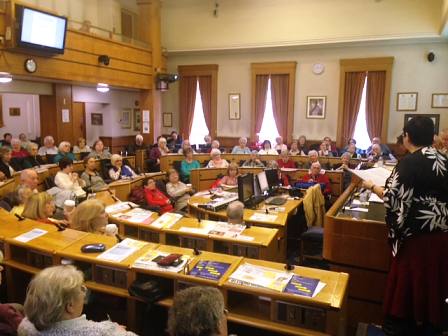 We've given many talks about bee conservation, some in libraries open to the public, others at the request of local groups and societies. Here we see Rosina and Jill addressing the February 2015 meeting of the Over 50s forum, at the Town Hall in Romford.